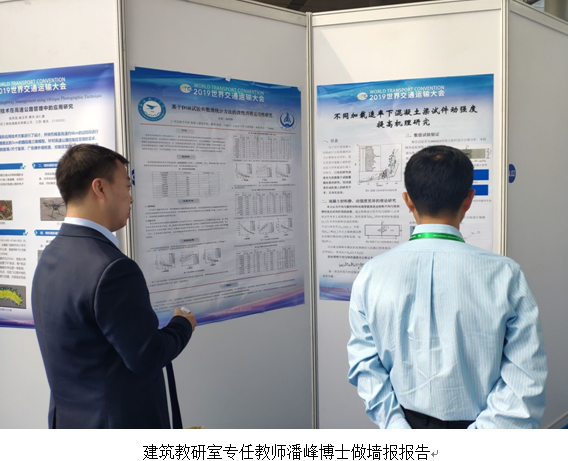 西安航空学院多名教师受邀参会,我院教师代表张琛博士、潘峰博士参加了此次会议。大会期间,2名教师代表分别做了名为“基于DSR试验和数理统计方法的改性沥青适用性样”和“不同加载速率下混凝土梁试件动强度提高机理研究”的墙报报告,展示了沥青材料及混凝土材料性能等方面的研究成果,与相关领域的专家学者进行了深入探讨。通过本次WTC2019学术交流,参会教师代表在良好的学术氛围中对学术前沿动态有了更深刻理解,同时,对西安航空学院在交通运输领域的影响力起到了一定的促进作用。