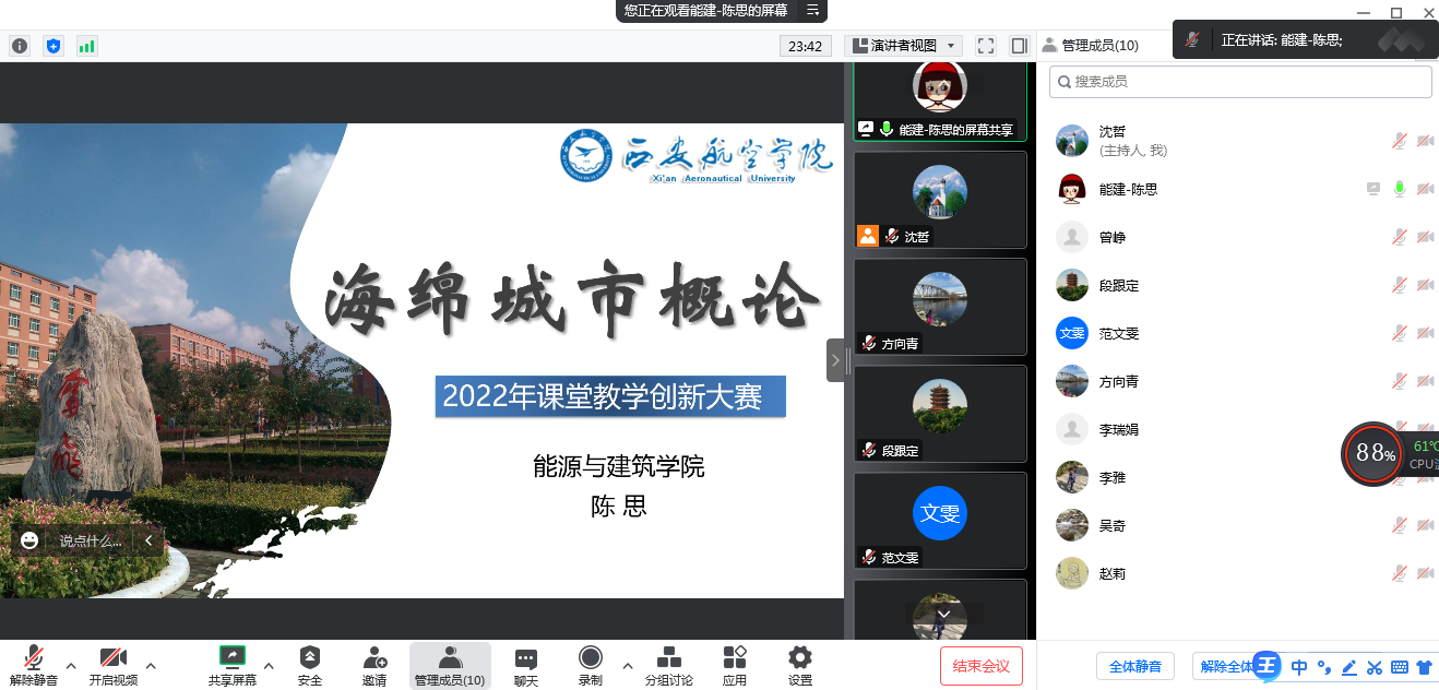 20221022日晚,给排水教研室线上举行2022年课堂创新大赛初赛。会议由沈哲主持,给排水教研室全体教师参加。