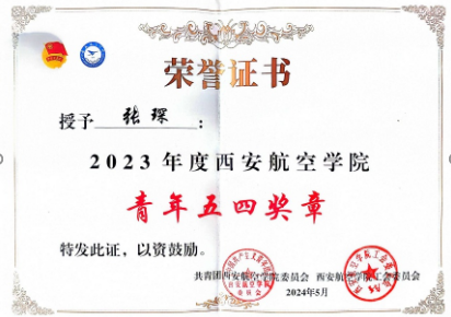 5月17日下午,在共青团西安航空学院委员会和校工会联合举办的“青春为中国式现代化挺膺担当”主题示范团日活动中,我院张琛教授荣获“西安航空学院2023年青年五四奖章”。