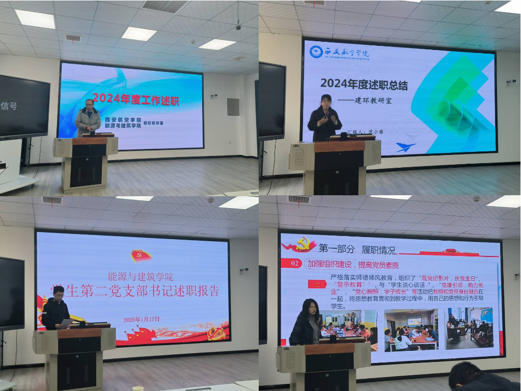 会上,各党支部书记围绕基层党支部的政治核心作用发挥、党支部建设和任务落实情况、制度执行及党员发展情况等方面进行了深入细致的汇报。同时,他们也分析了党建工作中存在的突出问题及下一步改进措施。各科室主任汇报了2024年度本科室重点工作任务的完成情况,包括教学、教研、专业建设、学科竞赛等。同时就2025年计划开展的主要工作进行了规划。学院督导组组长汇报了本年度学院督导检查的情况并对学院资料归档的进行了规定说明。