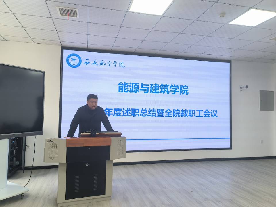 1月17日,能源与建筑学院在教学主楼9楼智慧教室召开2024年度述职总结暨全院教职工会议,本次会议旨在全面总结2024年度学院各项工作的开展情况,并为2025年的工作规划奠定坚实基础。此次会议由学院党总支书记曹国震主持,学院领导班子、各专业负责人、党支部书记、科室主任以及全院教职工参加了会议。