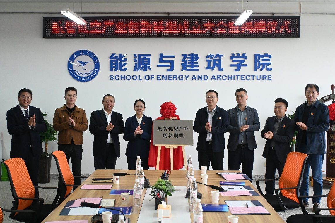 值此西安航空学院建校70周年之际,10月15日下午,“航智低空产业创新联盟”成立大会暨揭牌仪式在能源与建筑学院隆重举行。此举即是向校庆的诚挚献礼,更是学校主动对接国家低空经济战略、深化产学研融合的关键布局。西安航空学院副校长许文丹,陕西陕建瑞高科技园有限公司副总经理张珂,中舜国际工程设计有限公司总经理陈佳斌,陕西安远工程咨询有限责任公司董事长李云龙,北京金风慧能技术有限公司中西分公司区域总经理史浩鹏、人力资源部长刘伟,陕西长风新能源有限公司总经理张宇超、商务经理张佳丽,展视网(北京)科技有限公司区域总经理米坤,能源与建筑学院党总支书记曹国震、副院长张琛、党总支副书记段高陵及教师代表共同出席仪式,仪式由副院长李杰主持。