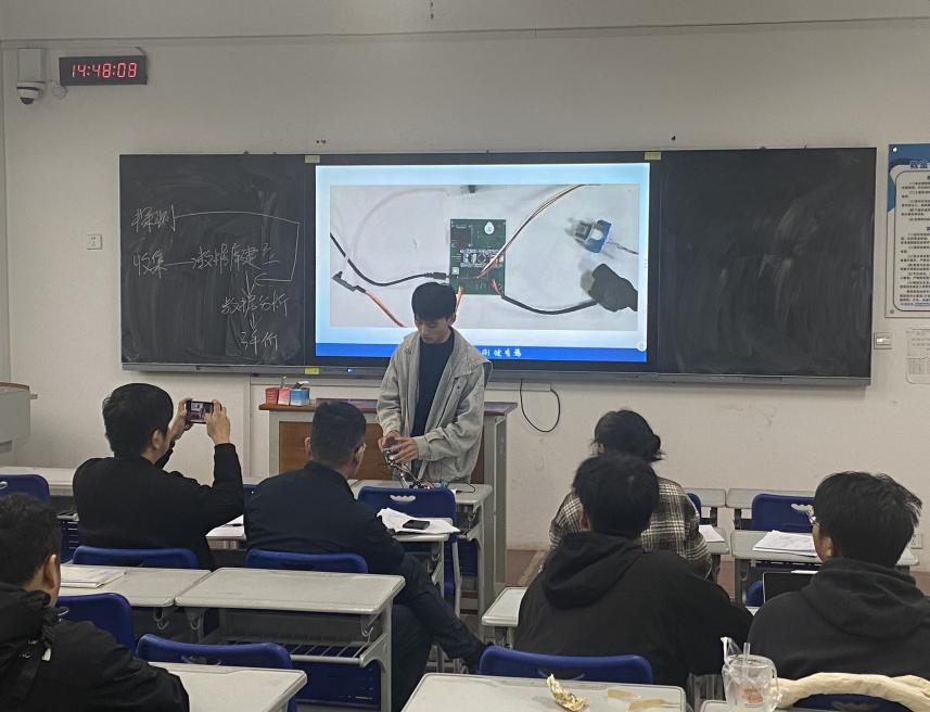 下午两点,答辩会正式拉开帷幕。为确保答辩的公平、公正与高效,本次答辩会制定了详尽的流程规则。每个项目团队均享有4分钟的多媒体展示时间和4分钟的评委问答环节。在展示环节中,各团队主讲人需围绕项目的立项背景、研究目标、技术路线、创新点、实施过程、取得成果、应用前景及团队分工与合作等方面进行精炼阐述。严格的时限要求不仅考验了同学们归纳总结与口头表达能力,更体现了学院注重效率、追求精准的务实作风。现场计时精确,环节衔接流畅,整个答辩过程秩序井然,展现了能源与建筑学院师生良好的精神风貌和组织纪律性。