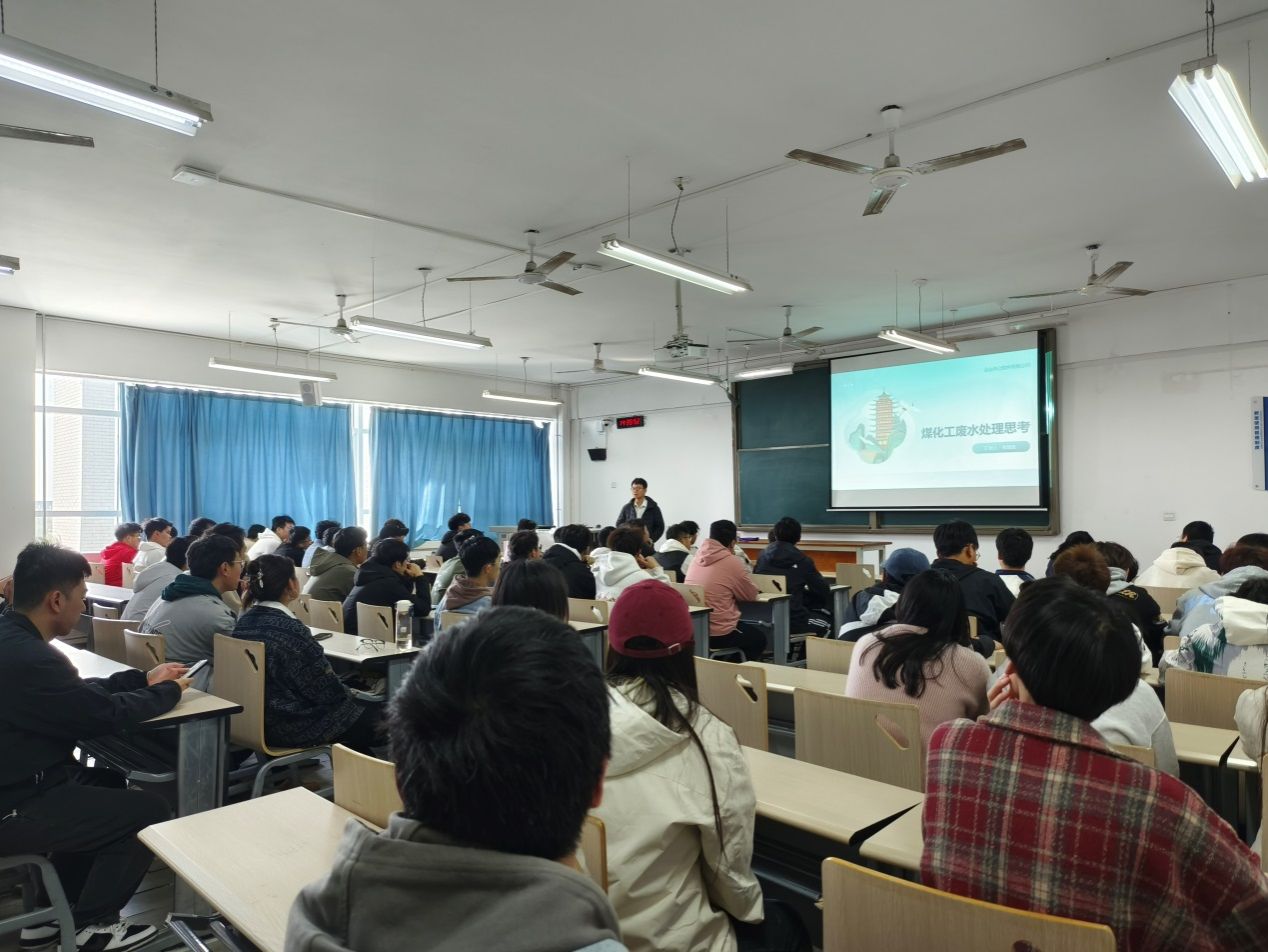 会上蒋静波主要介绍了能源化工废水概述、废水中杂质及影响、典型单元技术、水系统工艺设计与案例分享等方面对化工废水处理进行了详细介绍。讲解内容丰富,知识面广,重点突出,同时对未来“零”排放的前沿技术和发展趋势进行了介绍。最后勉励学生对一切持有敬畏之心,做事情要保持足够的专一,并注重动手能力培养,努力将自己先培养成为一个优秀的执行者,以后发展道路才会越走越宽。