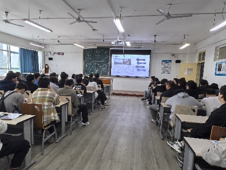 陕西长风新能源科技有限公司技术总监杨欢欢随后进行企业宣讲,介绍了公司发展历程、技术优势及重点项目,并对学校70周年校庆表示祝贺。她指出,西航能源与动力工程专业的人才培养与公司需求高度契合,期待深入合作,并欢迎同学们加入长风,共创辉煌。