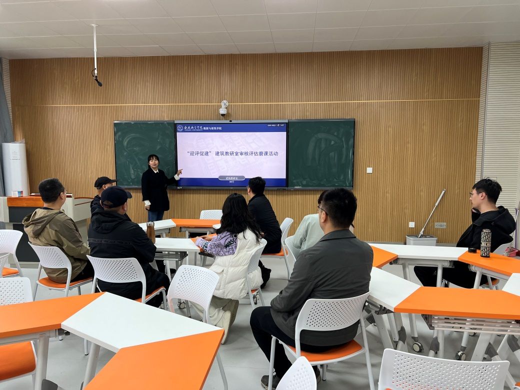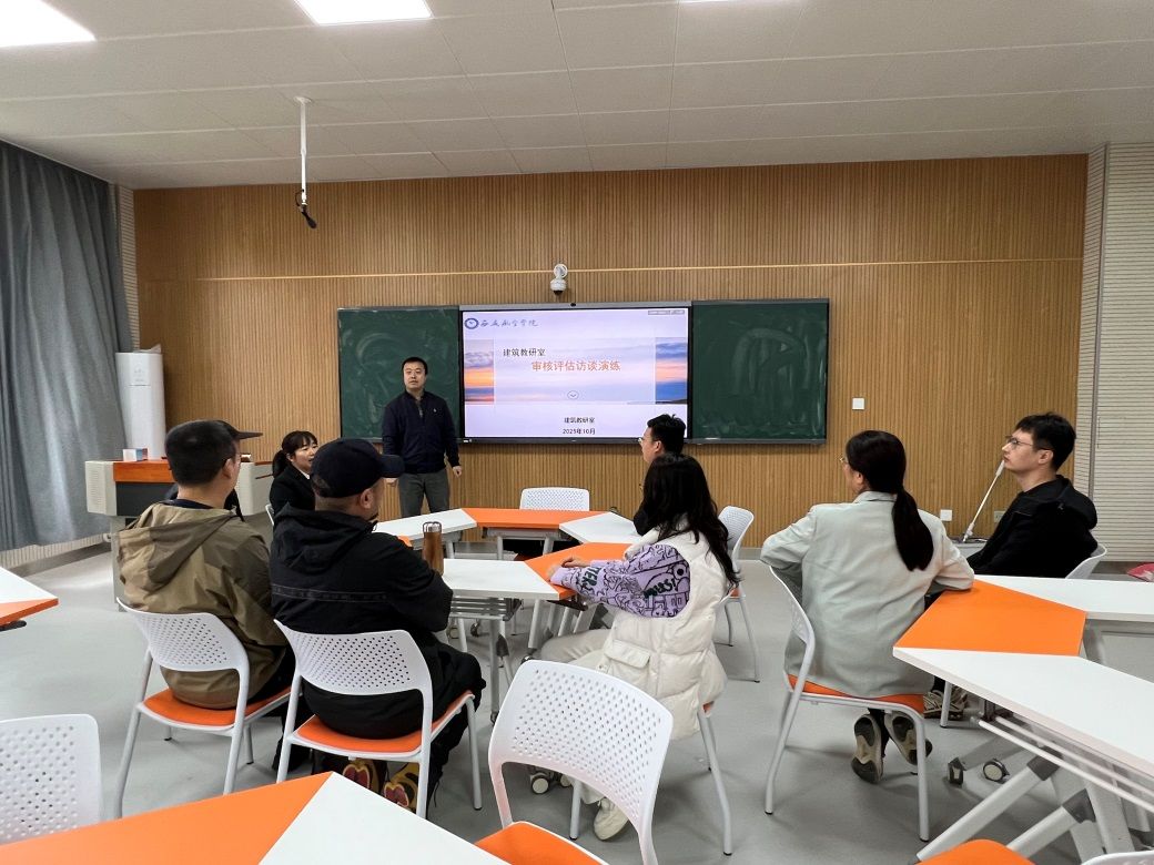 为扎实做好本科教育教学审核评估评建工作,提升课堂教学的质量,切实保障和提升人才培养质量,10月17日,建筑教研室在3208智慧教室组织召开了审核评估专题教研活动,聚焦课堂教学质量提升与访谈环节演练,建筑教研室全体专任教师共同参加了本次活动。