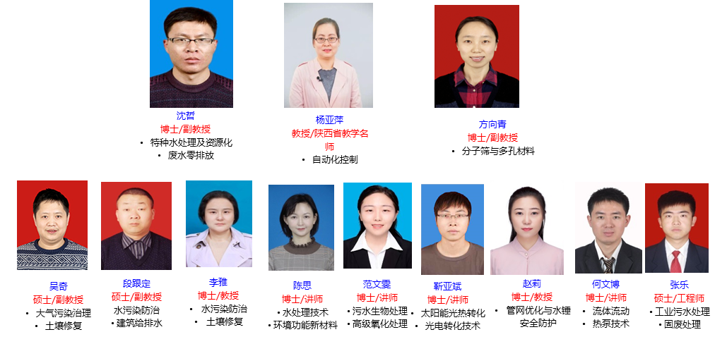 团队带头人沈哲,博士,副教授,现任中国化工学会工业水处理专业委员会专家库成员、陕西省土建学会给排水专业委员会委员、《西部素质教育》期刊编委。2010年开始从事水处理技术研究,先后从事油田污水处理,化工废水处理,废碱液处理,零排放处理等方面的技术研究及开发工作,具有丰富的研发经验和现场主持实施的能力,承担和参与过多项大型工业化项目。主持和参与了陕西省科技厅、教育厅、延长集团、石化院的科研项目近20项,先后获得中国能源化学工会全国委员会颁发《全国石油化工系统先进操作法一等奖》、陕西延长石油科技进步二等奖,陕西省石化科技一等奖,陕西省高等学校科学技术奖二等奖,发表中文核心论文近20篇,其中SCI收录3篇、EI收录2篇,中文核心10篇,授权发明专利2篇,实用新型2篇。
