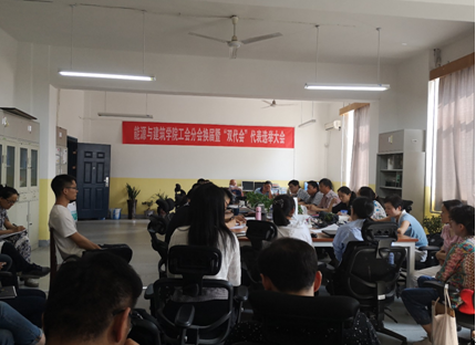 首先,学院分会主席高振江作了能源与建筑学院第一届分会工作报告,从四个方面对上一届分会工作进行了总结,并对上一届分会的会费收缴、使用情况向大会作了汇报。党总支书记刘剑坤对“双代会”代表选举和分会委员选举办法作了说明,并要求大家本着公平公正的原则选举出能够充分代表教职工,真正能为职工服务的职工代表和分会委员。会议以无记名投票形式,选举产生“双代会”代表和我院新一届分会委员会。