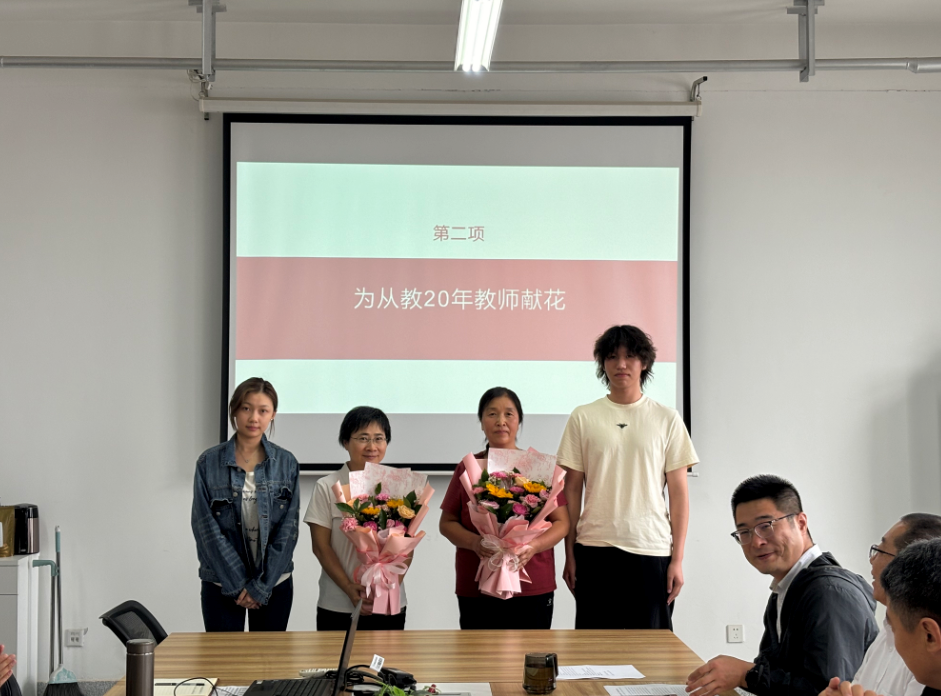 座谈会伊始,由学生代表向从教满20年的教师代表献花,表达学院对教师忠诚于党的教育事业、二十余载坚守初心的崇高敬意。