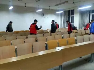 我院志愿者热情高涨,仔细、认真地打扫了阎教楼二楼教室卫生并清理教室垃圾。