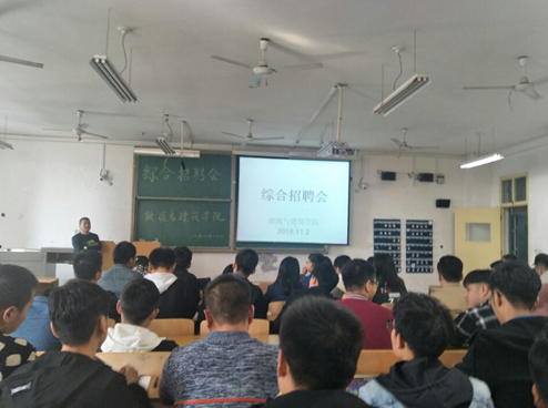 2018年11月2日,我院在阎良校区1220多媒体教室召开综合专场招聘会,参会企业有西安联盛能源科技有限公司、陕西知一空调工程有限公司、广联达科技股份有限公司西安分公司、陕西秦匠智能科技有限公司。招聘岗位涵盖建环、能动、造价、建筑专业,参加招聘会学生100余名。能建学院学生管理科高振江科长和就业辅导员赵莉老师热情接待前来招聘企业领导。