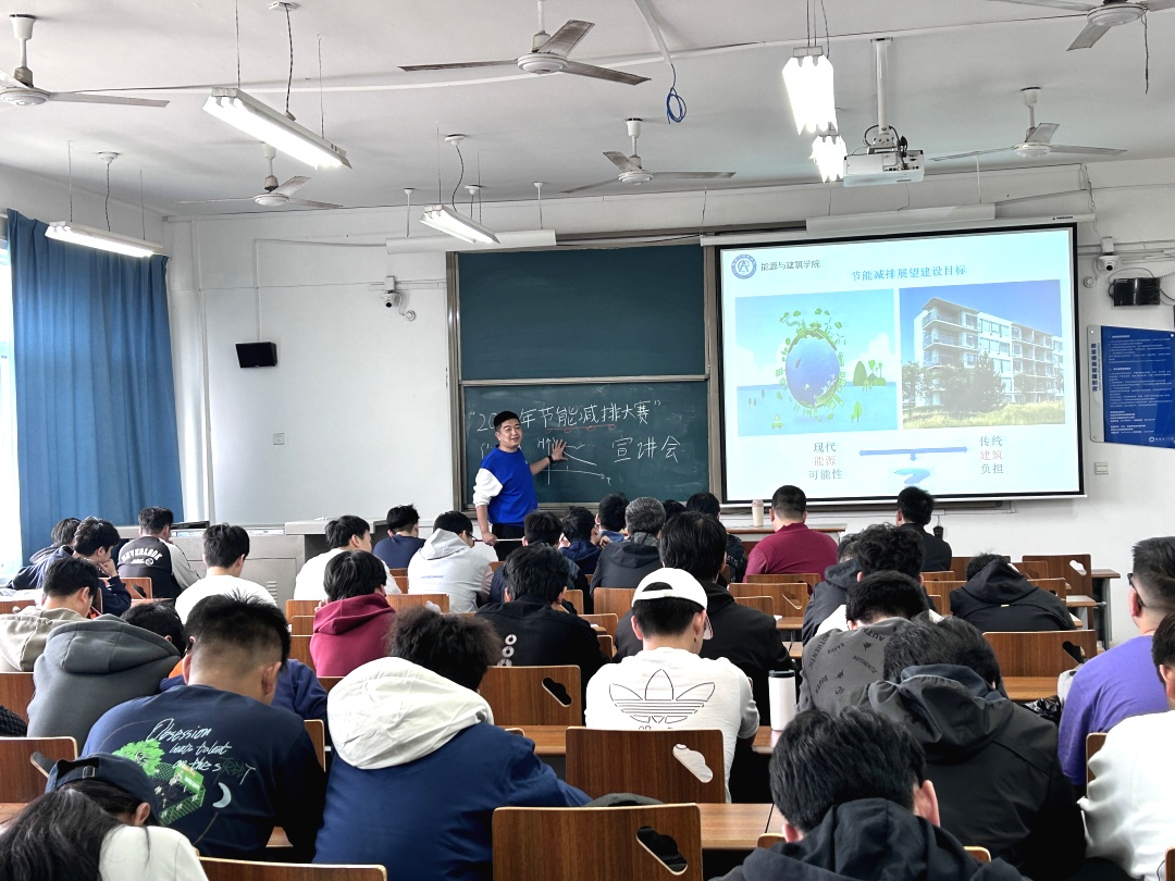 在关于“节能减排大赛宣讲”的讲座中,建环教研室申慧渊老师就最新全国节能减排大赛向同学们做出讲解。会议第一部分,申老师讲解了节能减排协会的创建背景,通过传统建筑的负担与现代能源的可能性的对比,展望未来节能减排的建设目标,第二部分就建环专业所发生的改变向同学们一一阐述,指出应以实践为根基,通过创新重新挖掘传统的技术,第三部分申老师就当前建环专业与节能减排比赛之间的联系重新整合,第四部分,申老师简述了历届节能减排大赛我校师生所取得的优秀成果,最后,申老师向同学们介绍了节能减排的基础,向同学们发出了参加比赛的倡议,鼓励同学们多多参加节能减排学科竞赛。