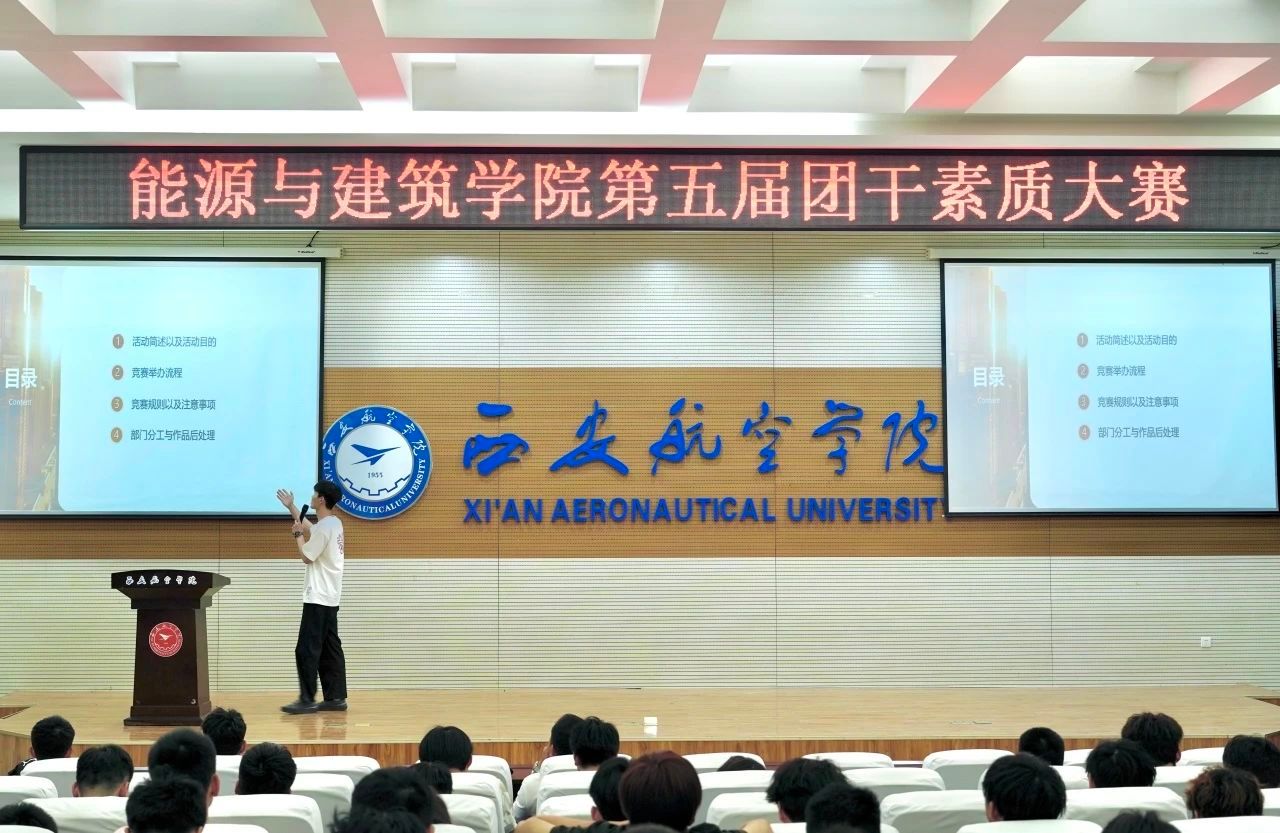 2024年是“五四”运动105周年,为进一步引导全校青年大力弘扬以爱国主义为核心的五四精神,持续推进学生干部党史及团史学习教育,引导和激励广大团员青年坚定理想信念,同时进一步加强基层团支部活力,提升学生干部素质素养。能源与建筑学院团总支于5月14日晚在阎良校区报告厅举办能源与建筑学院第五届团干部素质能力大赛院赛。本次大赛由团总支书记李轶鹏老师和学生会主席团成员李嘉豪同学担任评委。团总支副书记白家熙同学主持。