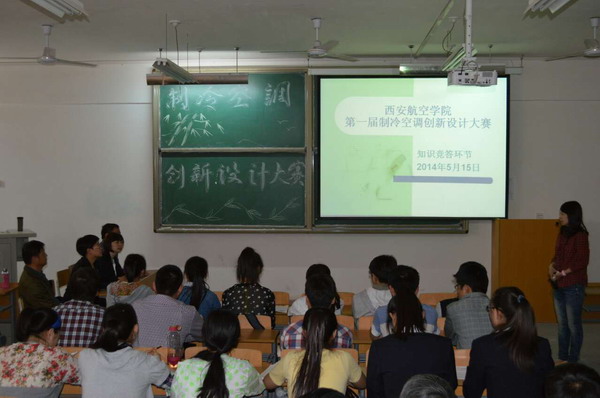 为促进学生之间的学习氛围,师生专业知识交流,鼓励大学生对专业知识的追求与探索,帮助大学生展现知识而提供平台。2014年5月15日,动力工程系暖通教研室举办的西安航空学院第一届制冷空调创新设计大赛在阎教1222进行。