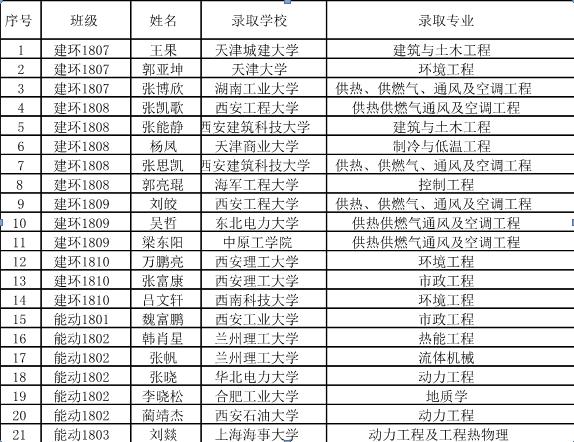 能建学院考研学生录取名单: