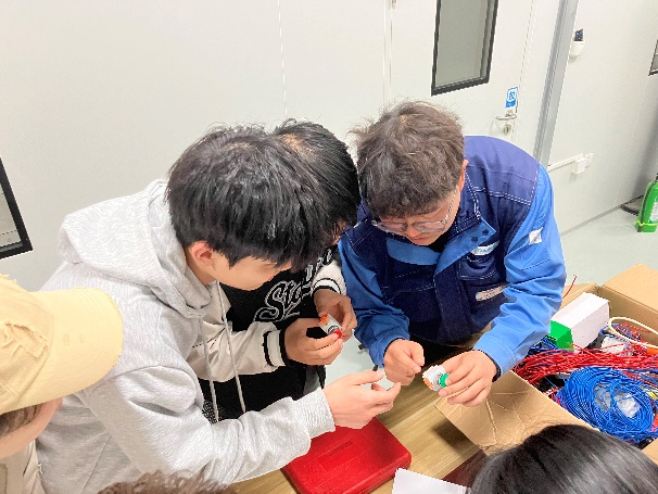 培训第三项内容为电气接线操作:该项培训主要使学生掌握电线剥线、紧固、跨接、分线等技术,并掌握电气连接时的安全操作。