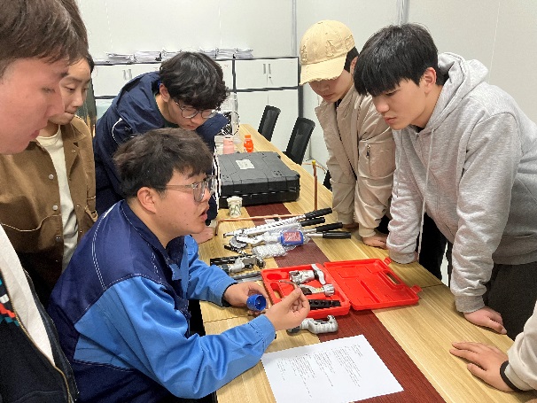 3月21日下午,建筑环境与能源应用工程专业负责人杜芳莉和教师何文博邀请大金公司技术骨干毋少杰来我校,在阎良三号实验楼人居环境实验室,对大金杯2024年技能比武大赛学生进行国赛培训。