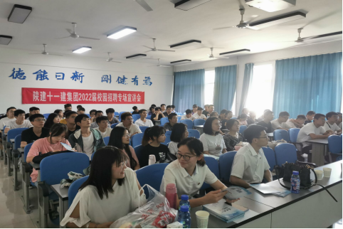 2021年9月10日下午两点半,能源与建筑学院于阎良校区阎教1234室举办“陕西建工第十一建设集团有限公司”专场招聘会,我院工程管理、给排水科学与工程、建筑环境与能源应用、能源与动力工程专业共57余名学生参与,本场招聘会由公司负责人郭涛主持。
