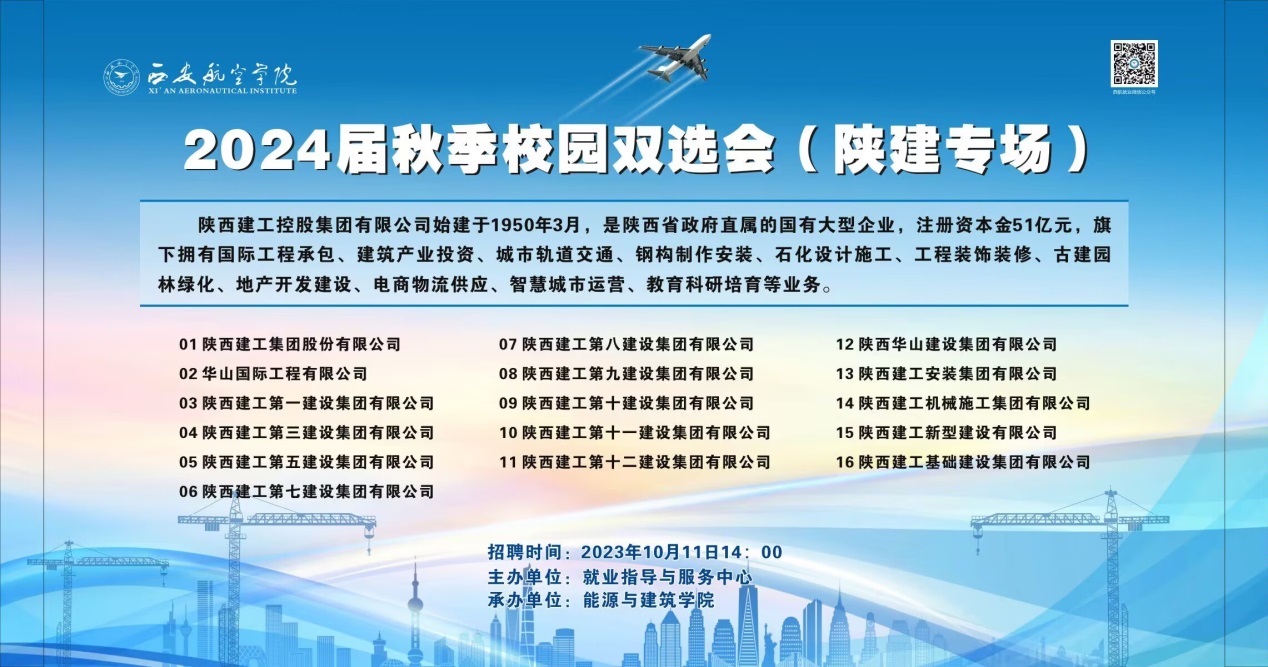 为进一步做好我校2024届毕业生就业工作,推进毕业生充分就业,实现高质量就业,10月11日下午,陕西建工控股集团专场秋季校园双选会在我校阎良校区科教楼一楼大厅举行。